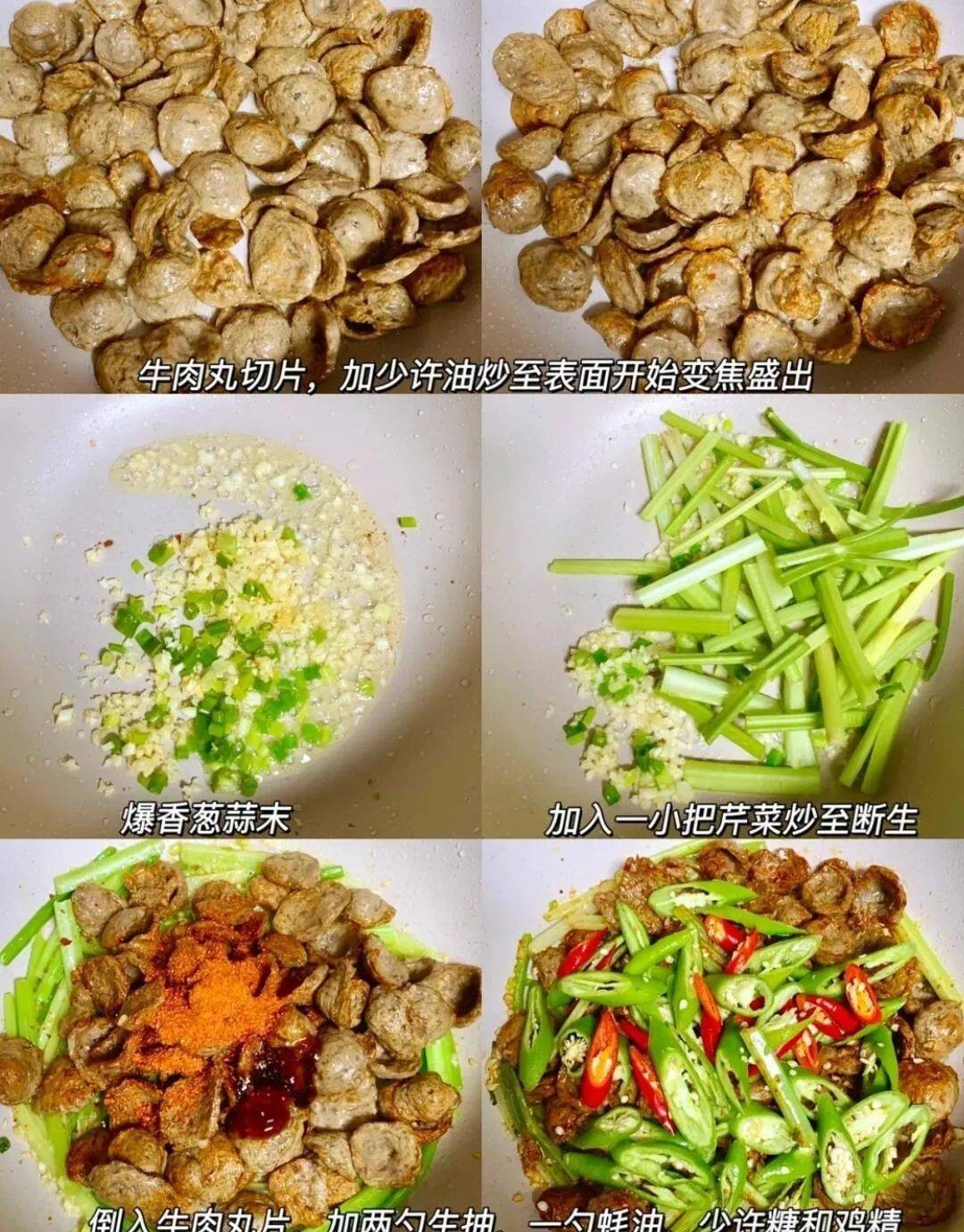 你想想,饱满弹牙的牛肉丸,在锅里滋滋作响,散发着诱人的香味,再配上鲜红的辣椒和翠绿的芹菜,这色香味俱全的画面,是不是已经让你垂涎欲滴了?别急,我这就告诉你,这道菜到底有多神奇!
